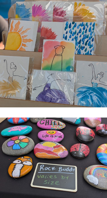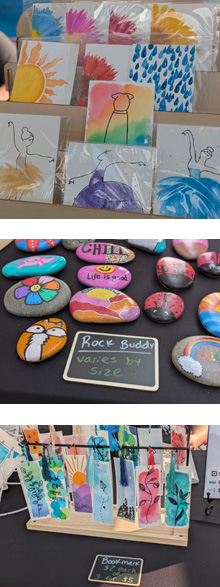 We have a large selection of handmade greeting cards, bookmarks, prints (matted, unmatted and framed), picky pads (great for anxiety and ADHD!) and "rock buddies". There’s something for everyone!